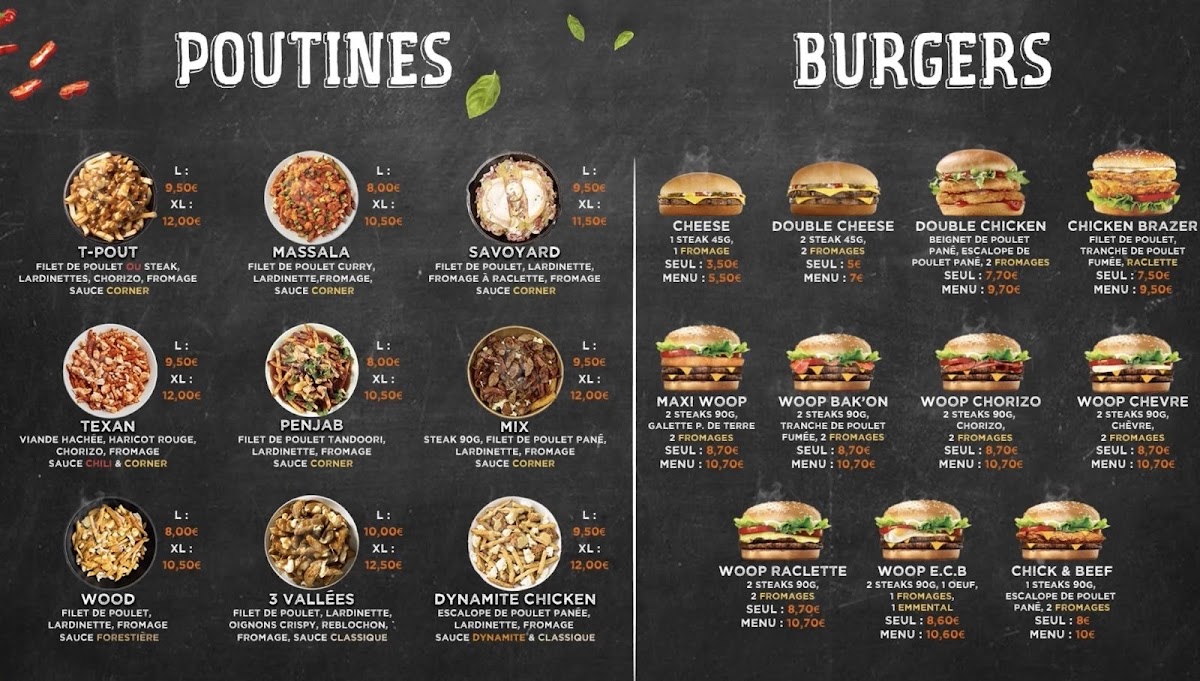 From their signature burgers like the Woop' chèvre burger with 2 steaks, goat cheese, and a choice of toppings, to their flavorful croque monsieurs and bruschettas, Eats Corner Mantes La Jolie has something for everyone. The menu also features savory rice dishes and indulgent poutines, each crafted with attention to detail and a focus on quality ingredients.